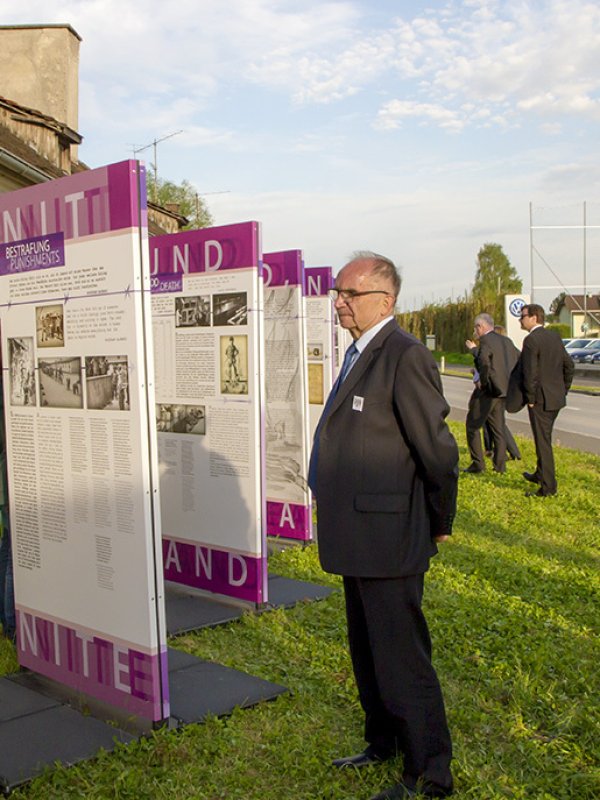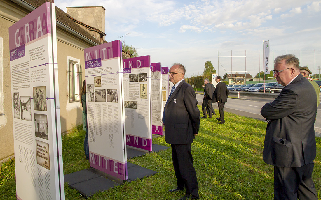 Prezydent Alexander Van der Bellen oraz wiceminister Magdalena Gawin w towarzystwie byłych polskich więźniów, a także przedstawicieli kilkunastu delegacji międzynarodowych obejrzeli także wystawę plenerową „Gusen: granit i śmierć, pamięć i zapomnienie", przygotowaną przez Muzeum Historii Polski we współpracy z Fundacją Polsko-Niemieckie Pojednanie oraz znajdujące się w sąsiedztwie materialne pozostałości po obozie KL Gusen: plac apelowy, esesmańskie baraki oraz młyn kamieni.